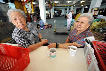 两位老年志愿者正在休息