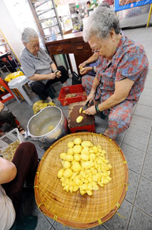 老年志愿者们正在削土豆